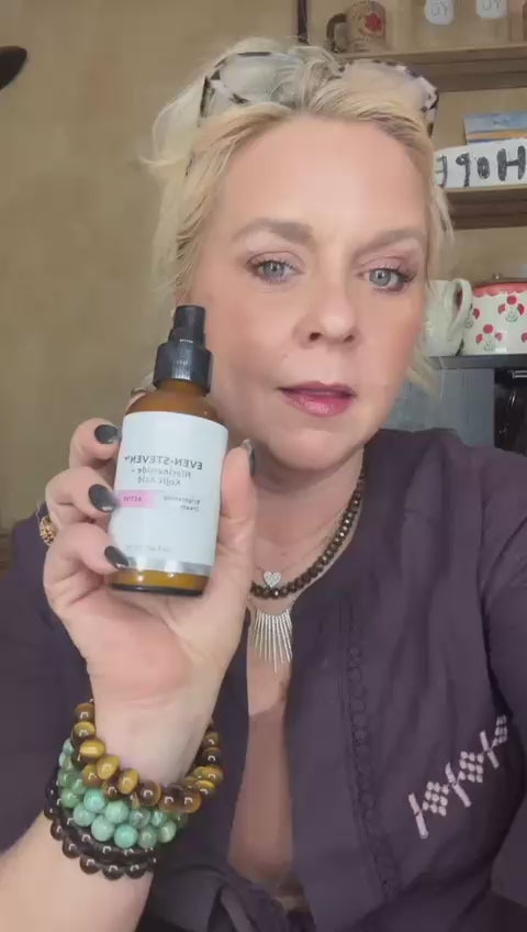 Step 2 – Even-Steven’s Serum: After bathing, apply evenly onto clean, dry skin. Focus on areas with dark spots or uneven tone. Use morning and evening for best results.